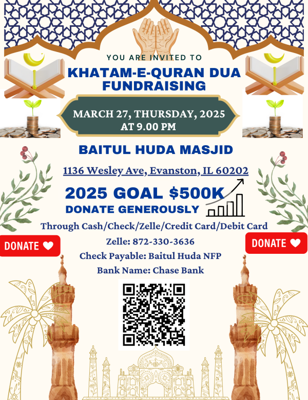 Baitul Huda Masjid was established in 2010 to serve the growing Muslim community in Evanston, Illinois. What began as a small prayer space has grown into a vibrant Islamic center that serves hundreds of families in the area.
